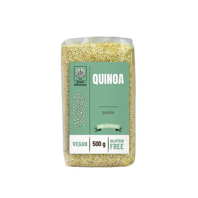 Összetevők: 100% fehér quinoa Átlagos tápérték 100g-ban: Energia (kJ): 1475Energia (kcal): 350 Zsír (g): 5,6 -telített zsír (g): 0,7 Szénhidrát (g): 57,2 -cukor (g): 0 Rost (g): - Fehérje (g): 14.1 Só (g):