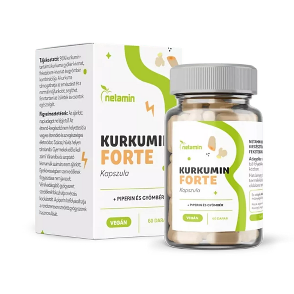 A Netamin Kurkumin FORTE piperint (feketebors-kivonatot) és gyömbért is tartalmaz, melyekkel a kurkumin bizonyítottan szinergiában hat. Vizsgálatok szerint a feketeborsban lévő piperin drámai módon, akár 2000 százalékkal képes növelni a kurkumin biológiai hasznosulását.