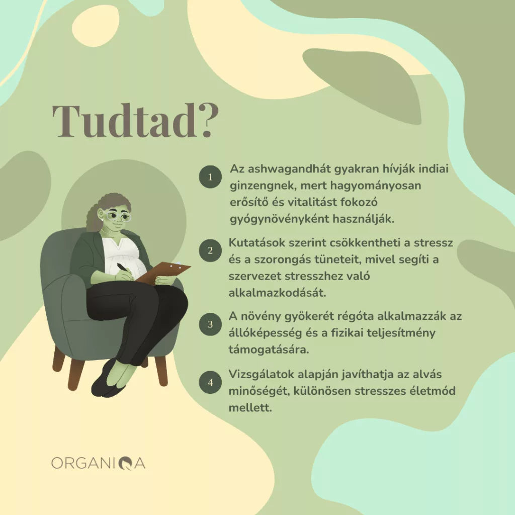 Ashwagandha 10:1 kivonatot (500 mg) tartalmazó gyógynövényes étrend-kiegészítő az idegrendszer támogatására. Neked ajánljuk, ha ingerlékenységgel, hangulatingadozással küzdesz, szorongásos problémáid vannak vagy ha az idegrendszered és a hormonrendszered (női és férfi) szeretnéd szelíden támogatni.