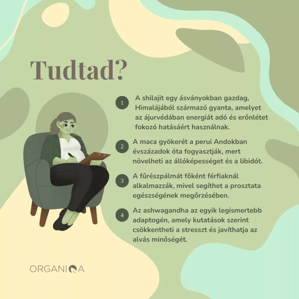 shilajit kivonat, maca gyökér kivonat, fűrészpálma kivonat, ashwagandha gyökér por, panax ginseng gyökér kivonat, ganoderma kivonat, görögszéna kivonat